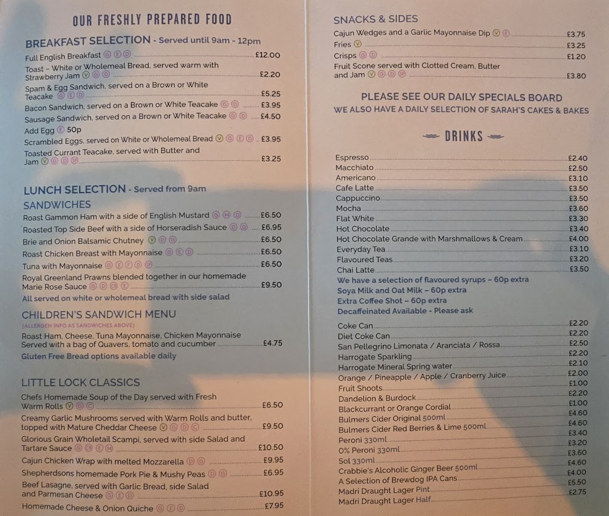Welcome to The Little Lock, a charming cafe nestled in Marsden, Huddersfield. This hidden gem is known for its warm atmosphere and a diverse menu that caters to any palate. Begin your day with a hearty Full English Breakfast or indulge in delightful sandwiches featuring roast gammon ham and locally sourced tuna. For lighter fare, enjoy homemade salads or savory dishes like gluten-free chicken Kyiv.